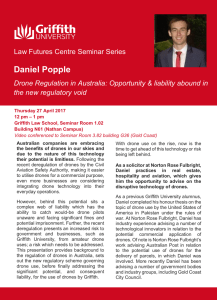 Brisbane lawyer Daniel Popple (Norton Rose Fulbright) updated colleagues at the Law Futures Centre yesterday (April 27) with an engaging seminar titled “Drone regulation in Australia: Opportunity and liability abound in the new regulatory void”.