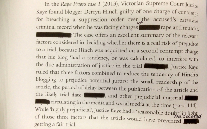 [See also – my article in The Conversation on how the 2015 edition of our textbook inadvertently breached a Victorian suppression order and had to be reprinted.]